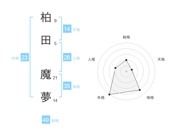柏田 魔夢さんの外格は23画の5点!