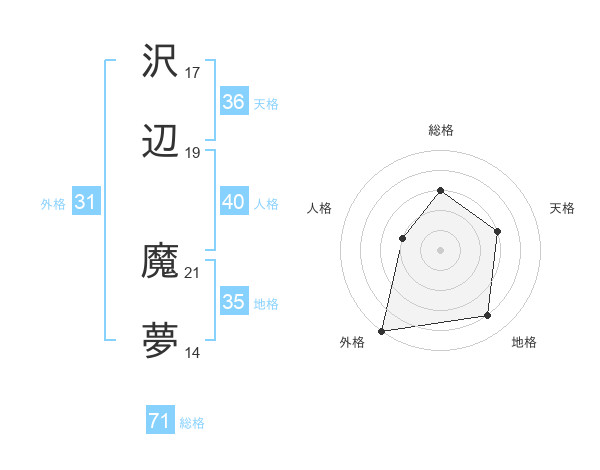 沢辺 魔夢さんを姓名の画数から五運を鑑定