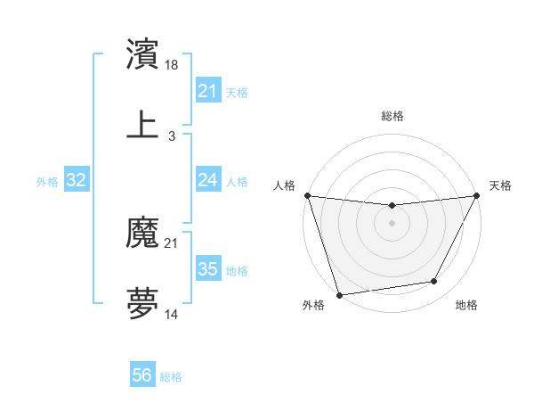 濱上 魔夢さんの天格は21画の5点!