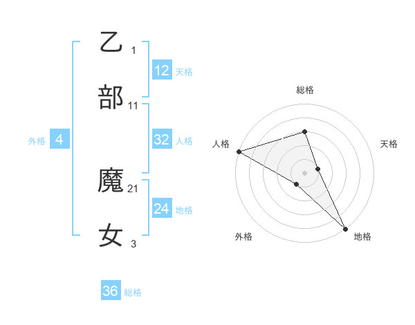 乙部 魔女さんの天格は12画の1点!