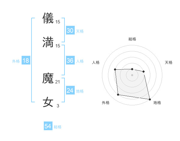 儀満 魔女さんを姓名の画数から五運を鑑定