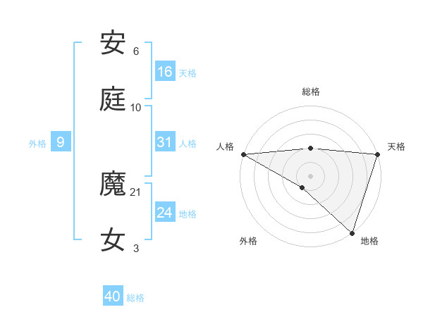 安庭 魔女さんを姓名の画数から五運を鑑定