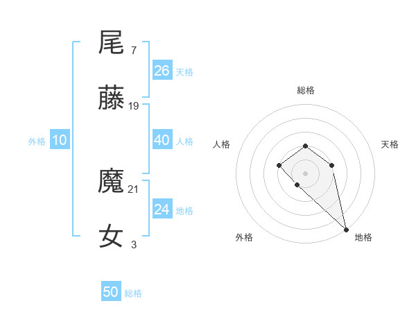 尾藤 魔女さんを姓名の画数から五運を鑑定