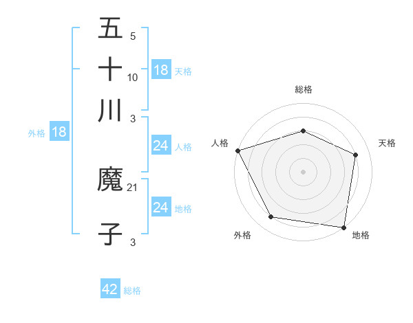 五十川 魔子さんを姓名の画数から五運を鑑定
