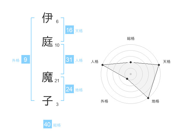 伊庭 魔子さんを姓名の画数から五運を鑑定
