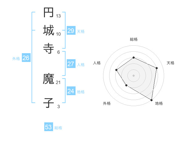 円城寺 魔子さんを姓名の画数から五運を鑑定