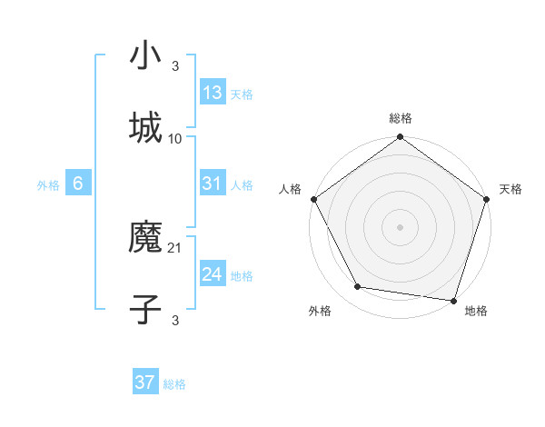 小城 魔子さんの総格は37画の5点!