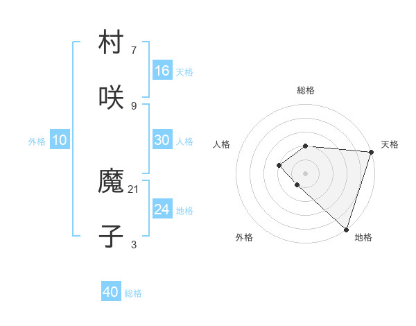 村咲 魔子さんの天格は16画の5点!