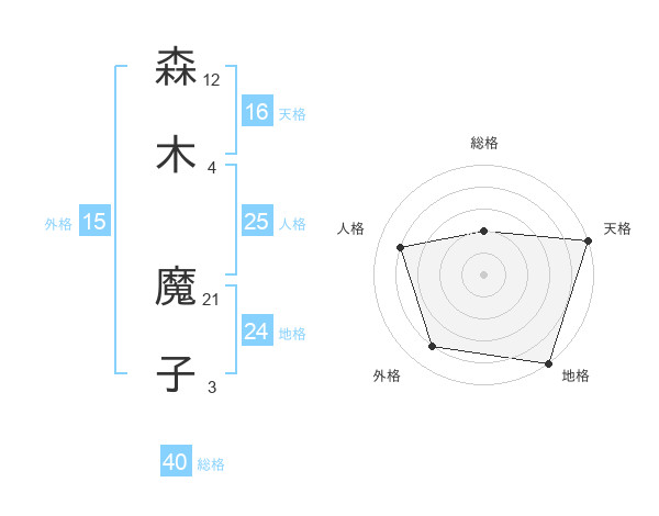 森木 魔子さんの総格は40画の2点!