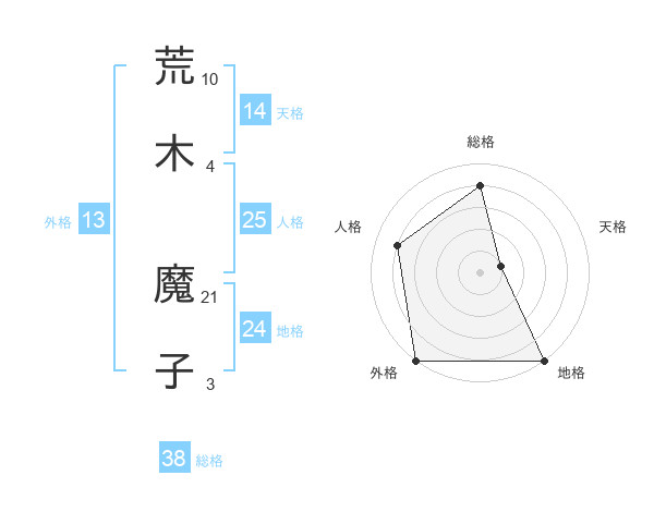 荒木 魔子さんを姓名の画数から五運を鑑定