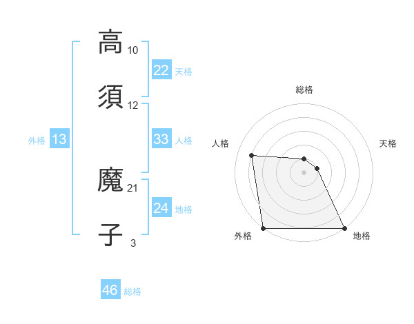 高須 魔子さんの総格は46画の1点!