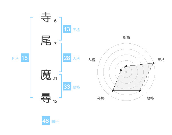 寺尾 魔尋さんを姓名の画数から五運を鑑定