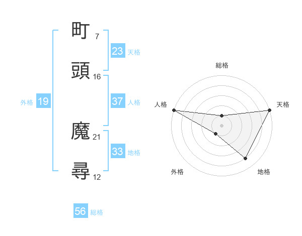 町頭 魔尋さんを姓名の画数から五運を鑑定
