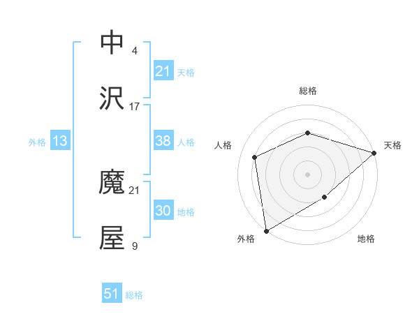 中沢 魔屋さんの総格は51画の3点!