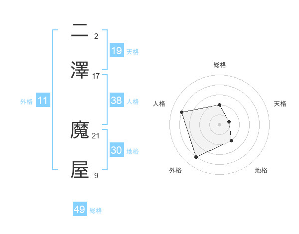 二澤 魔屋さんの総格は49画の2点!