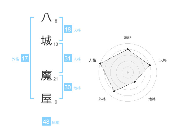 八城 魔屋さんを姓名の画数から五運を鑑定