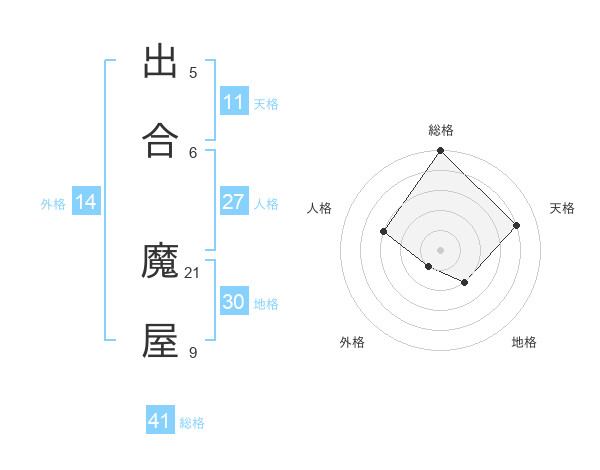 出合 魔屋さんを姓名の画数から五運を鑑定
