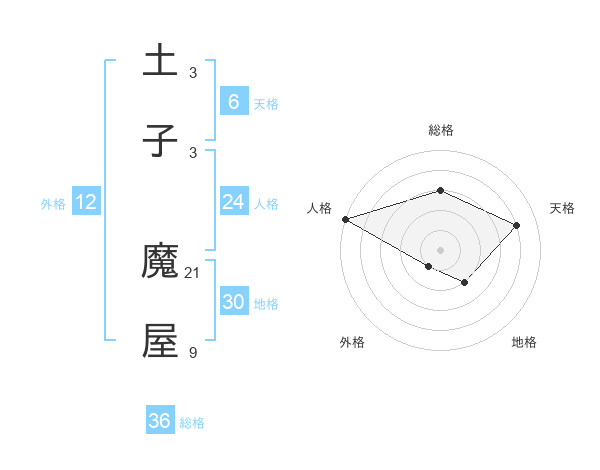 土子 魔屋さんの総格は36画の3点!