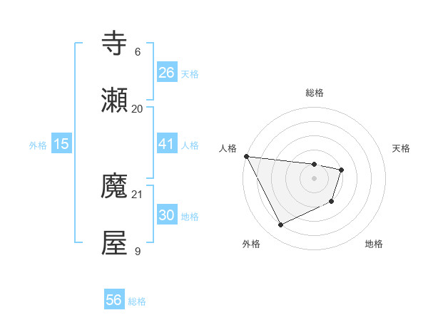寺瀬 魔屋さんの総格は56画の1点!
