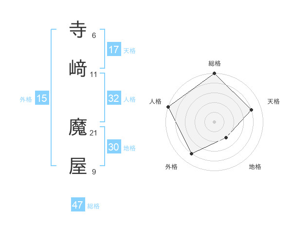 寺﨑 魔屋さんの総格は47画の5点!