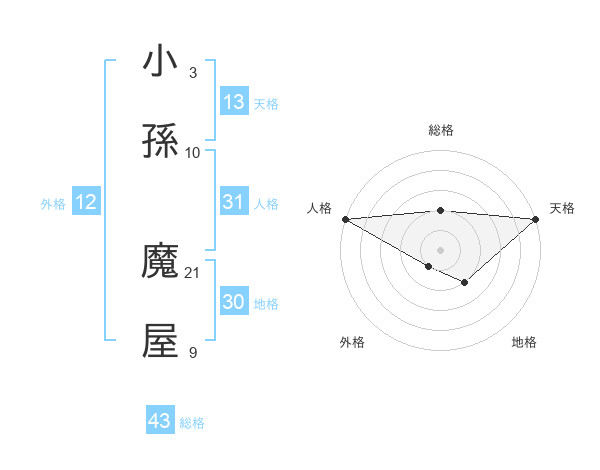 小孫 魔屋さんを姓名の画数から五運を鑑定