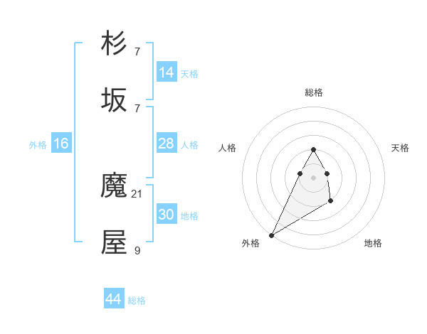 杉坂 魔屋さんの総格は44画の2点!