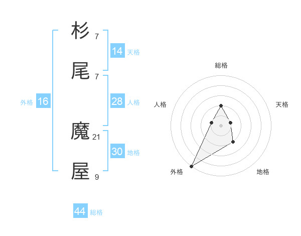 杉尾 魔屋さんを姓名の画数から五運を鑑定