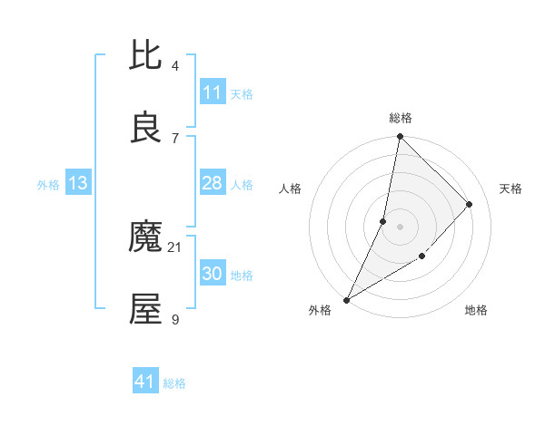 比良 魔屋さんを姓名の画数から五運を鑑定