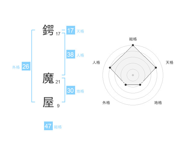 鍔 魔屋さんを姓名の画数から五運を鑑定