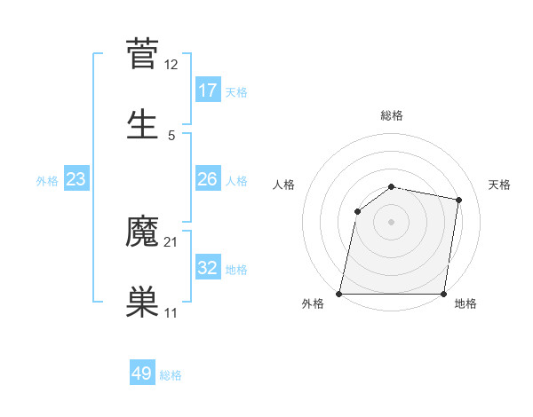 菅生 魔巣さんの外格は23画の5点!