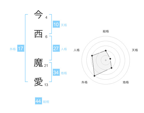 今西 魔愛さんを姓名の画数から五運を鑑定