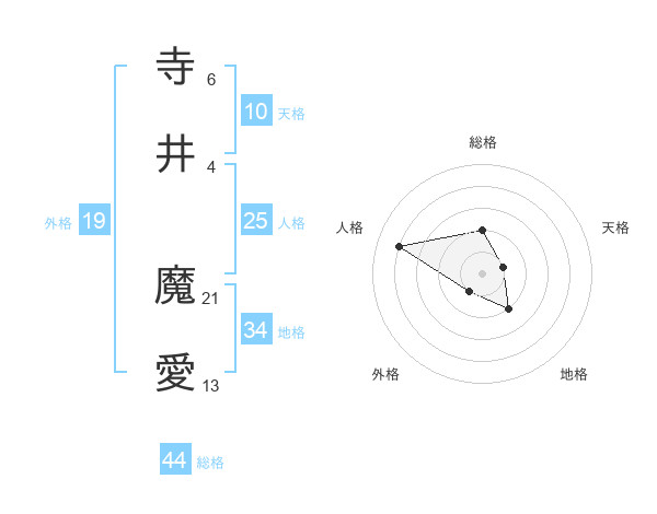 寺井 魔愛さんの総格は44画の2点!