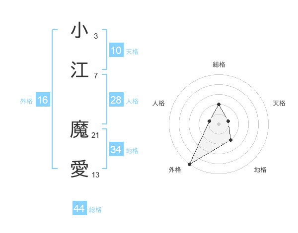 小江 魔愛さんを姓名の画数から五運を鑑定