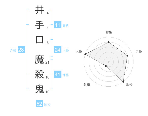 井手口 魔殺鬼さんを姓名の画数から五運を鑑定