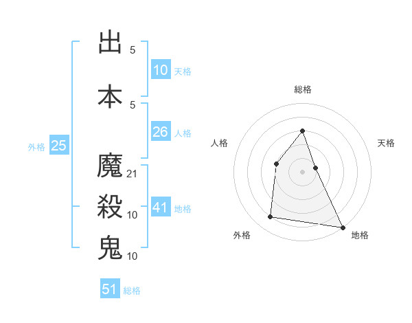 出本 魔殺鬼さんの総格は51画の3点!