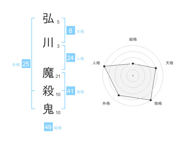 弘川 魔殺鬼さんを姓名の画数から五運を鑑定
