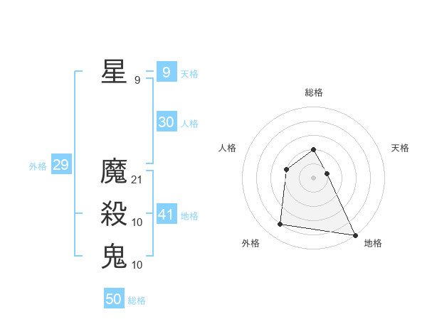 星 魔殺鬼さんを姓名の画数から五運を鑑定