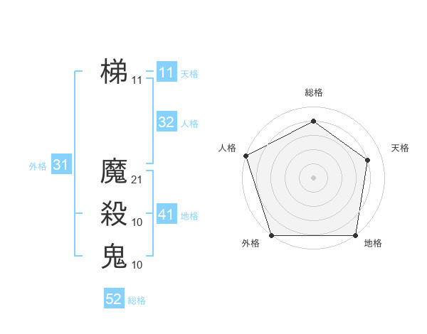 梯 魔殺鬼さんを姓名の画数から五運を鑑定