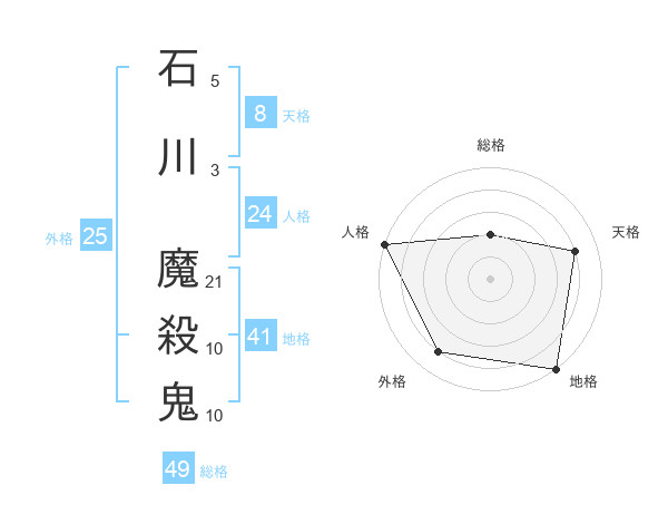 石川 魔殺鬼さんを姓名の画数から五運を鑑定