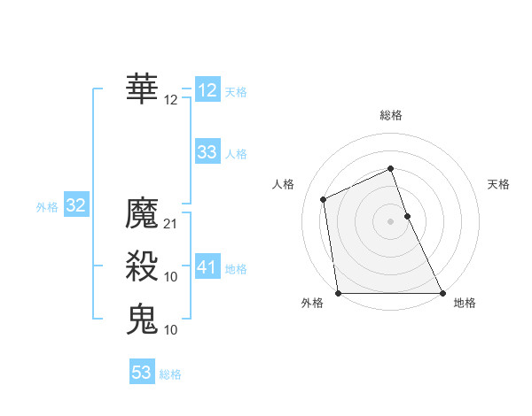 華 魔殺鬼さんを姓名の画数から五運を鑑定