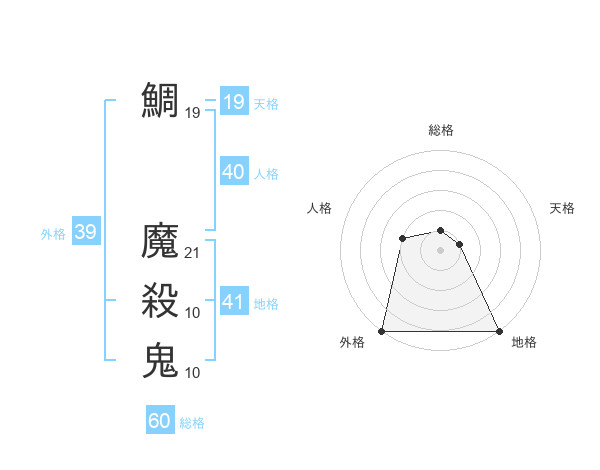 鯛 魔殺鬼さんを姓名の画数から五運を鑑定