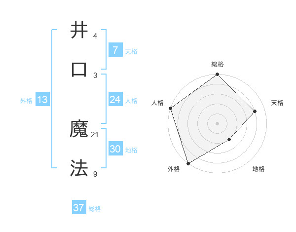 井口 魔法さんの総格は37画の5点!