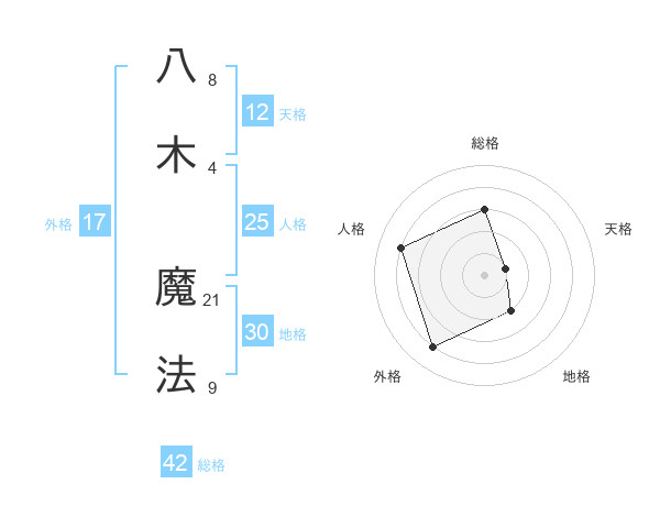 八木 魔法さんの外格は17画の4点!