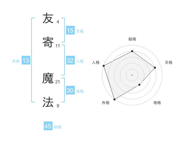 友寄 魔法さんの外格は13画の5点!