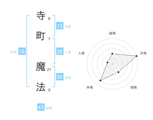 寺町 魔法さんを姓名の画数から五運を鑑定