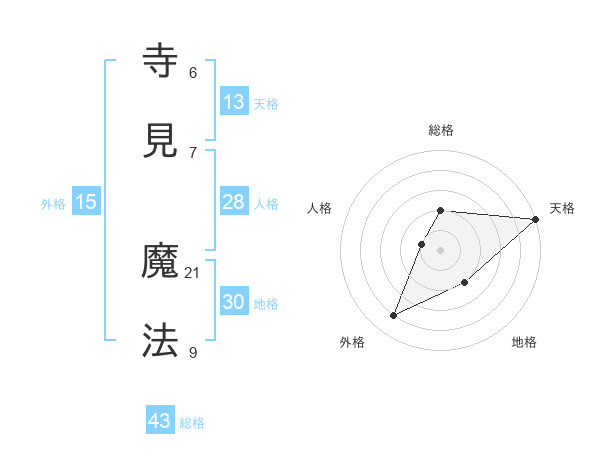 寺見 魔法さんの天格は13画の5点!