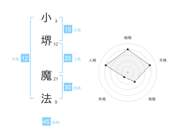 小堺 魔法さんの総格は45画の4点!