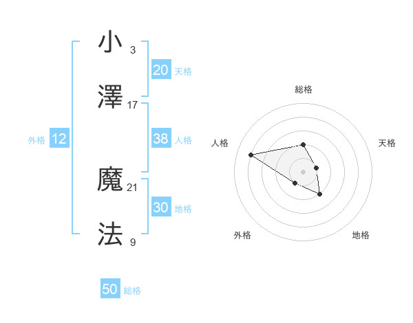 小澤 魔法さんを姓名の画数から五運を鑑定
