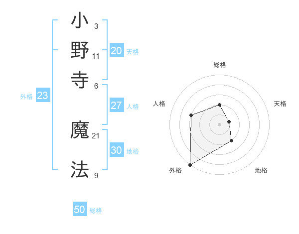 小野寺 魔法さんを姓名の画数から五運を鑑定