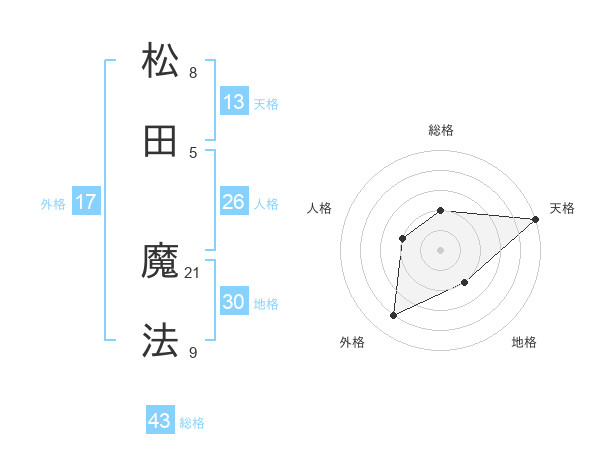 松田 魔法さんの天格は13画の5点!